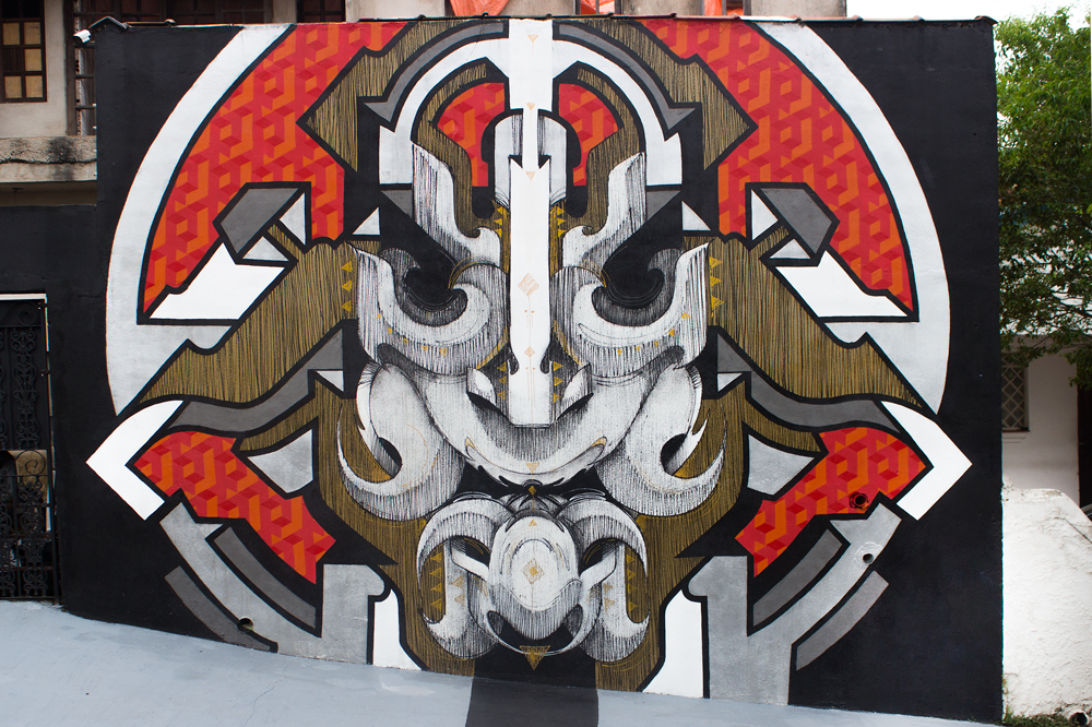 È l’opportunità per tornare ad approfondire il lavoro dell’eclettico duo sudamericano attraverso un nuovo intervento che ne eredita tutta la particolare cifra stilistica. Dênis Rodrigues de Freitas e Tiago Ramos Gasque aka B-47 portano avanti un percorso estetico differente che unisce sotto un unico nome elementi astratti con forme figurative. Partiti entrambi come writer negli anni ’90, i due hanno successivamente sviluppato un approccio personale, evolvendo il tratto attraverso le personali fascinazioni.