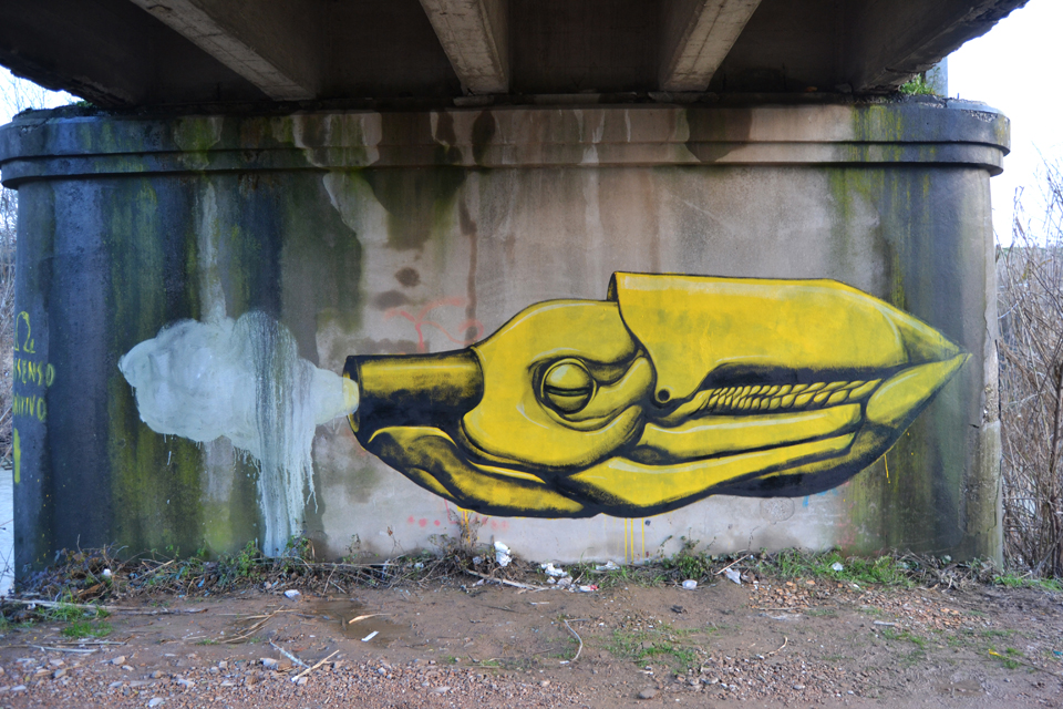 Il ritrovamento è stata una sorpresa per i ragazzi che escono quindi dal loro standard di grigi e neri, sorprendendo anche noi i in maniera positiva con un bel lavoro dipinto su un pilastro stradale in total yellow.