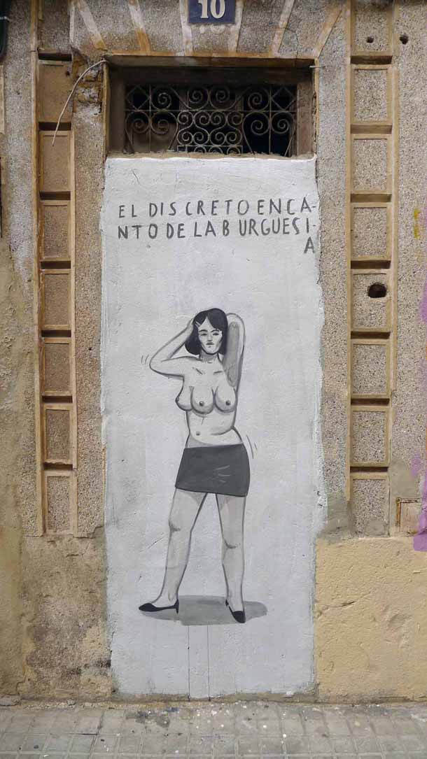 Per questa nuova serie lo spagnolo propone tre nuovi disegni, “El discreto encanto de la burguesía” con il dipinto di una donna dotata di ben tre seni, “Jaque Mate” dove mediamo un pezzo degli scacchi sottoposto a scacco matto ed infine “Caniche” con un uomo intento a portare a spasso il proprio barboncino. Ora potrebbero sembrare dei lavori semplice ma analizzando bene i titoli ed il contesto emergono i singoli significati, per il primo lavoro il fascino discreto della borghesia del titolo viene contrapposto a quello di una donna dotata di tre seni, per scacco matto invece possiamo intendere come una partita in cui i cittadini sono pedoni di una scacchiera e le istituzioni il re e la regina, infine il più sottile, l’uomo con a spasso il cane è una fine metafora che vede coinvolta la popolazione al guinzagli e resa povera sempre dalle istituzioni impersonate dall’uomo stesso.