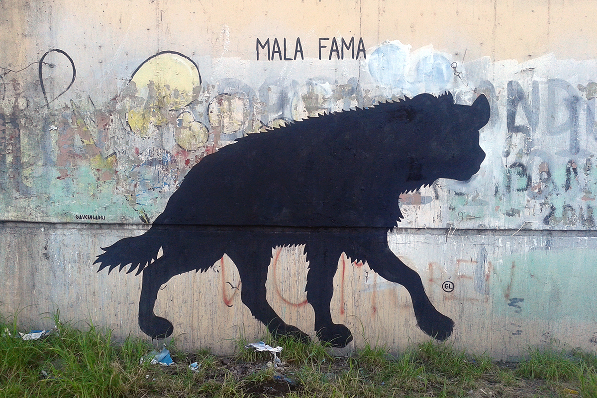 Abbiamo avuto modo di approfondire diverse volte l’operato ed il lavoro dei Gaucholadri rimanendo sempre interessati e divertiti dai differenti espedienti visivi adottati di volta in volta dagli artisti, il lavoro del duo affonda le sue radici su una precisa ricerca visiva che li vede avvicinarsi alle ombre, ed particolare attraverso, una riproduzione forte ed articolata di soggetti ed oggetti, animali, cose o persone, tutti rigorosamente dipinti in nero a simularne proprio le ombre. Gli interpreti in questo modo vanno a sviluppare una precisa volontà riflessiva che, accompagnata spesso da una frase o da un parola che spigea il significato dell’opera, offre una chiave di lettura su temi, spunti ed argomenti a carattere sociale, economico, politico passando per una velata connotazione antropologica. Il rapporto che va ad istaurarsi quindi tra le parole e le figure nere è concepito quindi per fornire a chi osserva una precisa chiave di lettura e tutti gli strumenti per saggiare e comprendere ciò che sta osservando, attraverso peculiare lettura visiva i Gaucholadri portano a compimento una critica velenosa ma al contempo fine ed energica. Gli interventi quindi rappresentano il veicolo e lo strumento dialettico attraverso il quale poter parlare e sviluppare di temi ed argomenti differenti che spesso sfociano in una critica e che rende dell’operato degli interpreti fortemente impegnato. Componente fondamentale del lavoro dei Gaucholadri è la forte immersività sintomatica che ne caratterizza gli interventi, chi osserva è infatti spinto a comprendere cosa si nasconde nella silhouette nera dipinta, ad addentrarsi all’interno dei temi e dei differenti spunti celati tra il divertente ma al contempo profondo senso di dialogo che spinge gli artisti a tracciare, ironici e taglienti stimoli.
