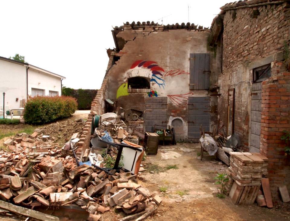 Come ormai avrete notato stiamo seguendo passo per passo le opere del nutrito gruppo di artisti partecipanti ad ICONE5.9, colpiti dall’idea generale della rassegna di ridare linfa ai luoghi massacrati dai terremoti dell’anno scorso. L’ultimo artista ad aver completato la propria facciata è Gola Hundun che va a realizzare una serie di opere all’interno di una delle zone più martoriate, siamo a Cavezzo e le sensazioni sono belle forti.