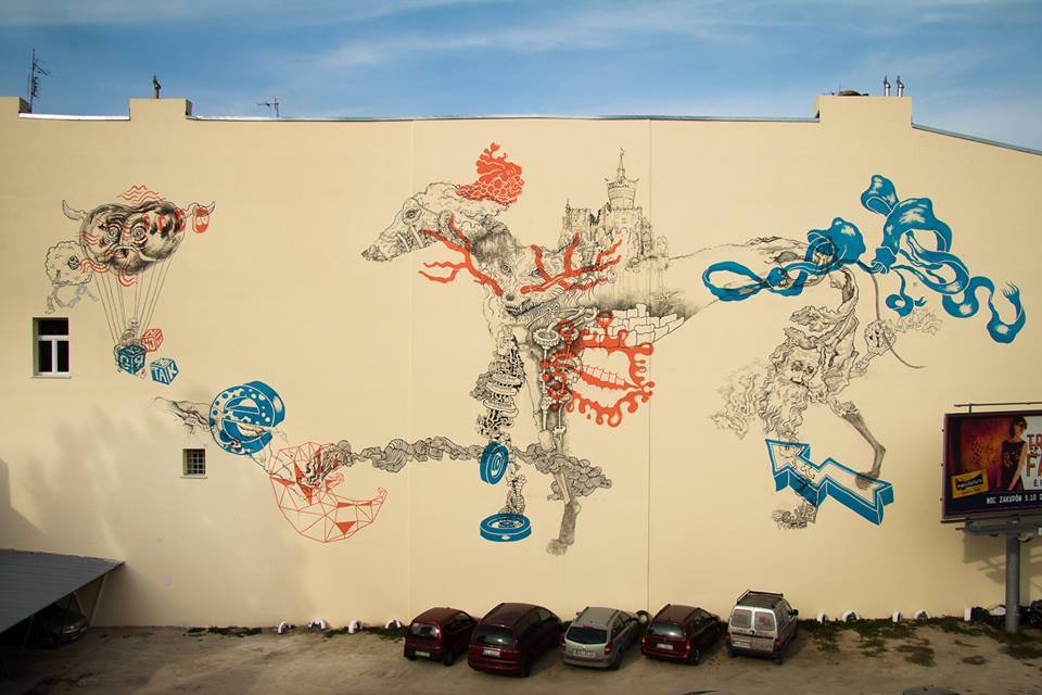 Una delle meraviglie dell’arte urbana a livello mondiale è senza dubbio il grande progetto Galeria Urban Forms, la gigantesca galleria a cielo aperto di Lodz in Polonia continua ad ospitare una sequenza impareggiabile di maestose opere che ne stanno giorno dopo giorno innalzando il livello qualitativo, l’ultima questa di Gregor che torna così nella bella città polacca per lavorare su una delle gigantesche pareti a disposizione.