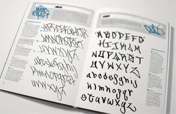 Within the pages of Flip the Script, author Christian Acker has systematically analyzed a cross section of American graffiti hand styles, contextualizing the work of graffiti writers from around the United States. Acker presents the various lettering samples in a clean organized format, giving the material a proper, formal treatment evoking classic typography books.