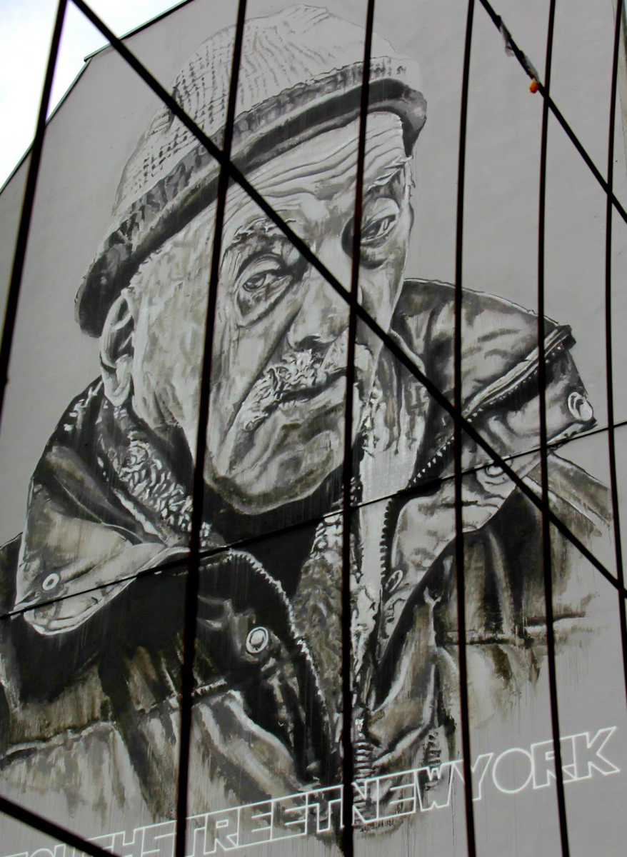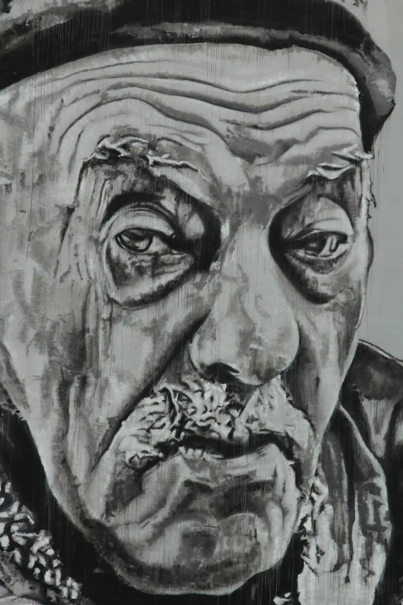 Per il festival Hendrik ECB Beikirch su questa grande parete a disposizione si esibisce in un nuovo ritratto, come sempre lo stile è molto accurato, sembra di trovarsi di fronte ad un grande fotografia, l’interprete disegna il volto di un anziano, un clochard probabilmente, sguardo fisso sembra cercare chi si trova di fronte all’opera, infine il tutto arricchite dal consueto lettering in basso al pezzo che indica il luogo dove l’artista ha incontrato la persona, splendido.