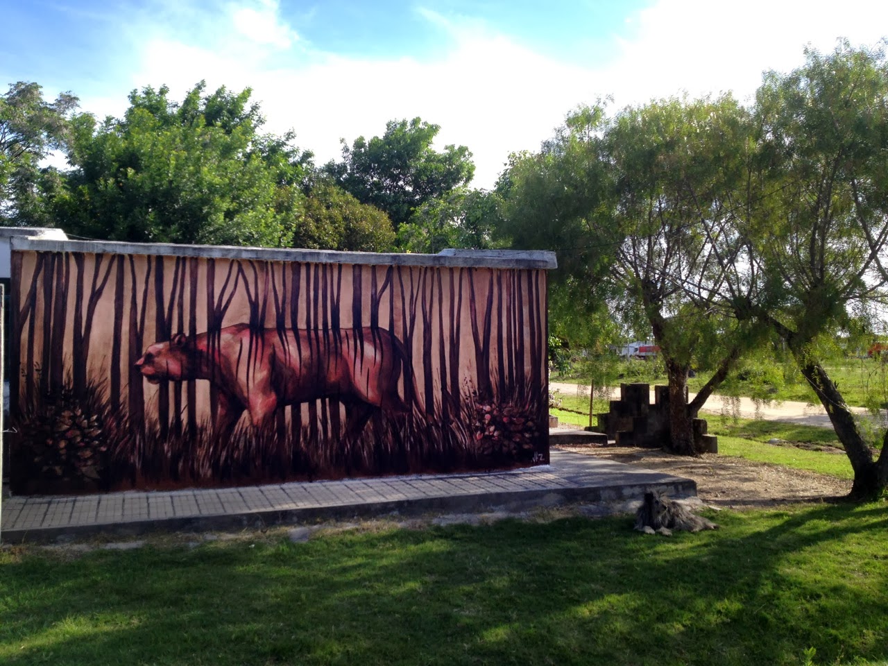 Finita l’esperienza all’eccellente Los Muros Hablan Festival di Porto Rico, JAZ si è spostato in Uruguay dove ha da poco terminato di dipingere questa piccola parete nella bella cittadina di Villa Soriano. Il grande artista Argentino prosegue anche in questa piccola pittura a portare avanti la propria personale visione scegliendo questa volta di concentrarsi sulla figura di un nuovo animale, Franco Fasoli continua a toccare con profondità i temi legati all’uomo, alla natura ed al mondo animale, questi tre aspetti vengono sviscerati dall’artista attraverso una personale e sfaccettatata visione dell’uomo e del suo animo, un approfondimento che riversa la propria forma attraverso un complesso rapporto con la natura ed in particolare nella rappresentazione dei predatori, un parallelo questo che viene portato al limite da JAZ attraverso le famose fusioni corporee dove interi corpi vengono amalgamati tra loro in una sorta di opera a metà tra il mistico e l’onirico, tra istinto e umanità, che da vita a corpi vacui persi nella loro brutalità animale, un ritratto questo che di fatto dipinge la figura dell’essere umano in un totale stato di decadenza. Quest’ultimo punto viene particolarmente enfatizzato dalla scelta di voler completamente eliminare i tratti del volto completamente assuefatti dalle figure animali nella loro opera di metafusione. Ad aumentare l’impatto delle sue produzioni troviamo poi la spiccata sensibilità lavorativa che vede l’interprete cimentarsi nell’utilizzo di vernici e tinte non convenzionali, una ricerca questa che ha portato negli anni JAZ ha servirsi di vernici di tipo asfaltico, ed ad una propensione per tinte dalla forte rilevanza emotiva, con colori caldi e vicini alla terra, una spiccata cura per il dettaglio, tutti elementi che di fatto vanno ad incrementare l’impatto delle sue creazioni.