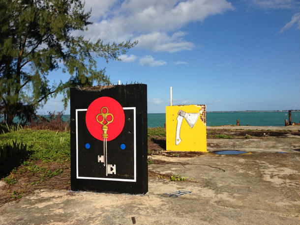 I due street artist, nei pressi dello skatepark già dipinto da Celso (qui) hanno occupato due piccole basi rettangolari proponendo due bei disegni. Juan Fernandez opta per un ascia disegnata con l’inconfondibile stile iper dettagliato, Celso invece propone una delle sue splendide chiavi con l’aggiunta della canonica corona rossa e dello sfondo nero.