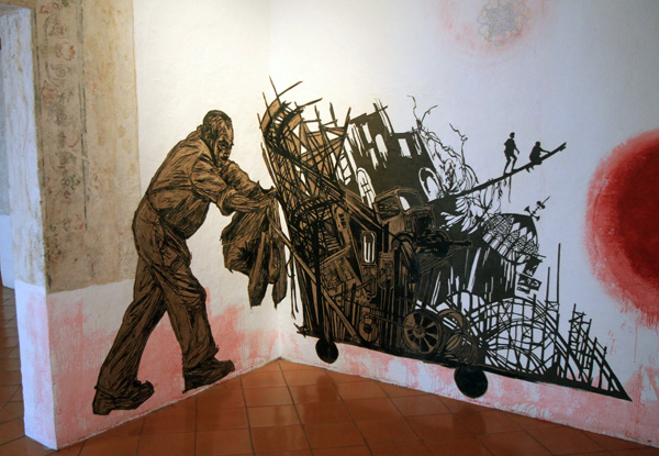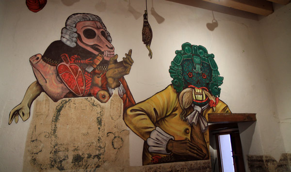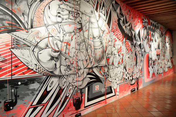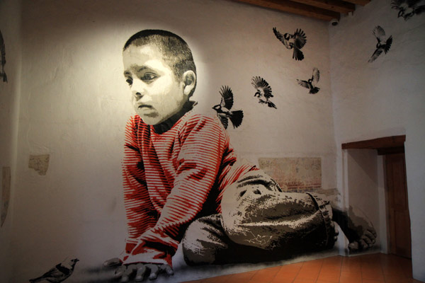 Vi abbiamo mostrato nei giorni scorsi alcuni lavori che hanno preso vita nelle strade di Oaxaca in Messico con gli interventi di How & Nosm, MOMO e Sten & Lex, i pezzi fanno parte di un progetto a più ampio respiro che ha visto la discesa di 12 tra i migliori interpreti a livello internazionale nella città messicana per inaugurare il nuovo Museo de Arte Contemporaneo. Per fare le cose in grande il museo ha chiamato un roster stellare di interpreti con nomi del calibro di RETNA, How & Nosm, Saner, Date Farmers, Lapiztola, Sten & Lex, MOMO, Vhils, Dr. Lakra, Swoon, NUNCA and Yescka che hanno dato vita a “Made in Oaxaca” (Hecho en Oaxaca) un interessantissimo group show dove ogni singolo artista ha avuto modo di esprimersi attraverso lavori, dipinti ed installazioni site-specific all’interno degli spazi. Massima libertà quindi con un risultato finale mozzafiato, si va dalle misteriose lettere di RETNA fino all’immenso lavoro di Sten & Lex, passando per i dipinti di Saner, il ritratto di Vhils ed i delicati di lavori di Swoon e la superba installazione firmata MOMO.