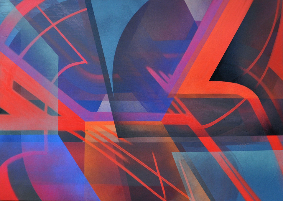Il lavoro di Matt W Moore poggia le sue basi sul design, regalandosi alcune uscite in strada di primissimo livello dove la componente astratta è il principale interlocutore, Tim Clorius invece spazia da un approccio più classico passando per lavori più estremi con la bomboletta, i due artisti così diversi nei loro approcci hanno avviato una conversazione visiva su tela. Il risultato è un interessantissimo show dal titolo “An Abstract Dialogue” ospitato all’interno degli spazi della Galerie P13, ogni artista ha visitato la tela più volte rispondendo di conseguenza alle modifiche presentate dall’altro interprete, un vero e proprio botta e risposta, creando così una conversazione sia verbale che visiva con l’esigenza di trovare la giusta armonia ed equilibrio nelle sensibilità e tecniche artistiche diverse, a completare questo dialogo un bel pezzo dipinto in una sessione esterna.