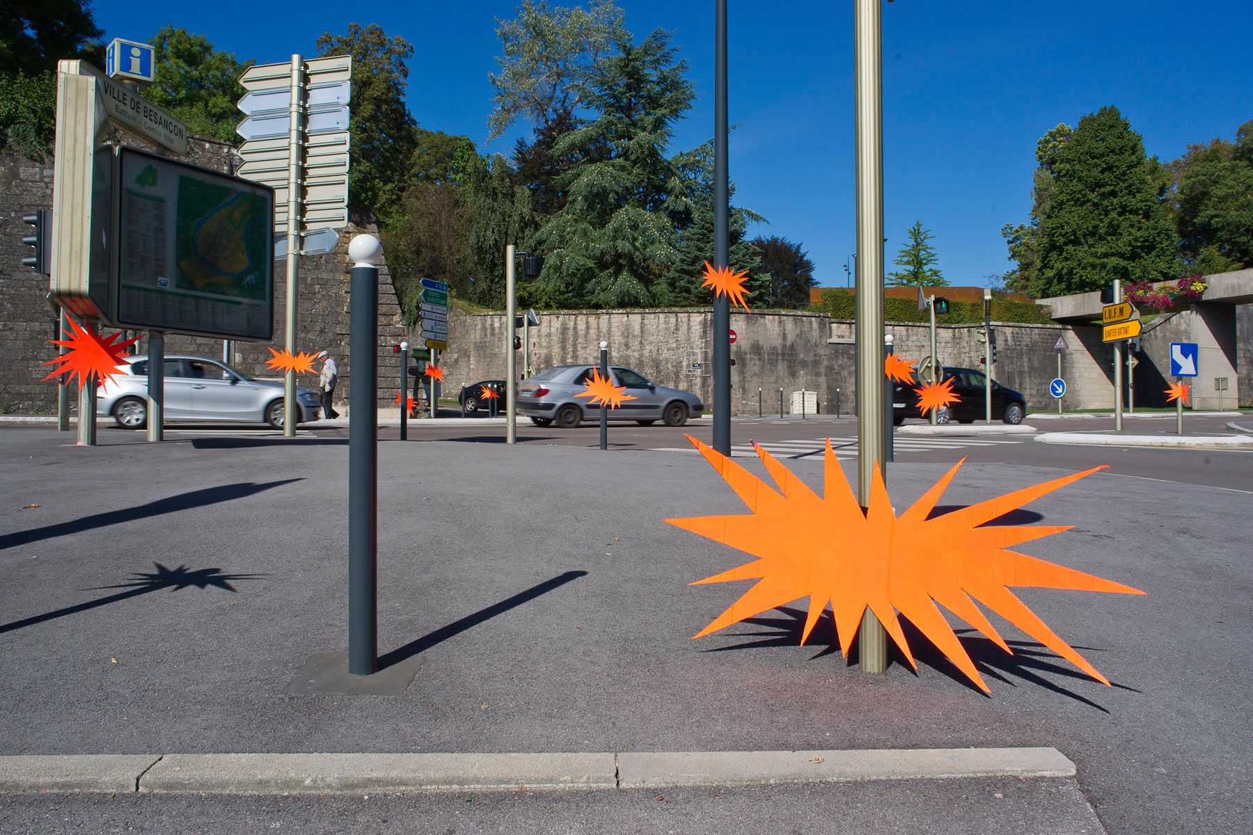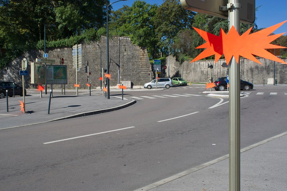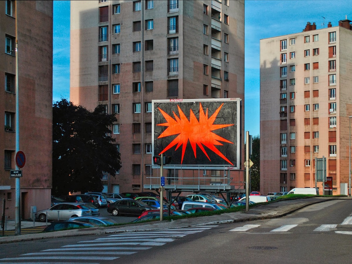 Proseguendo quindi il suo particolare filone di interventi urbani, OX approda quindi nella cittadina francese portando avanti quello che è il suo tratto distintivo, l’artista francese gioca con le superfici e con lo spazio antistante, ne cambia la percezione visiva cancellando attraverso il suo lavoro l’idea stessa ed i concetti legati alle billboards. I cartelloni pubblicitari rappresentano infatti l’assoluto distacco netto dal paesaggio, atte quindi a catturare l’attenzione di chi osserva per puro scopo pubblicitario di qualsiasi natura, l’interprete parte da questo presupposto per ribaltarne completamente il senso, OX fonde i cartelloni con quello che c’è intorno, con gli stessi pali che li sostengono, con la natura o con la particolare conformazione urbana che risiede tutt’intorno, realizzando quindi un lavoro che possa nel suo risultato finale essere completamente immerso all’interno del luogo. Le opere quindi vanno letteralmente a sostituire una immagine cambiando l’aspetto stesso e la conformazione del posto, l’artista però non si concentra unicamente nella mera intelaiatura di un tessuto omogeneo, piuttosto preferisce divertirsi ad immaginare cosa risiede al posto del cartellone pubblicitario, stuzzicando la nostra fantasia ed elaborando il tutto attraverso il proprio immaginario.