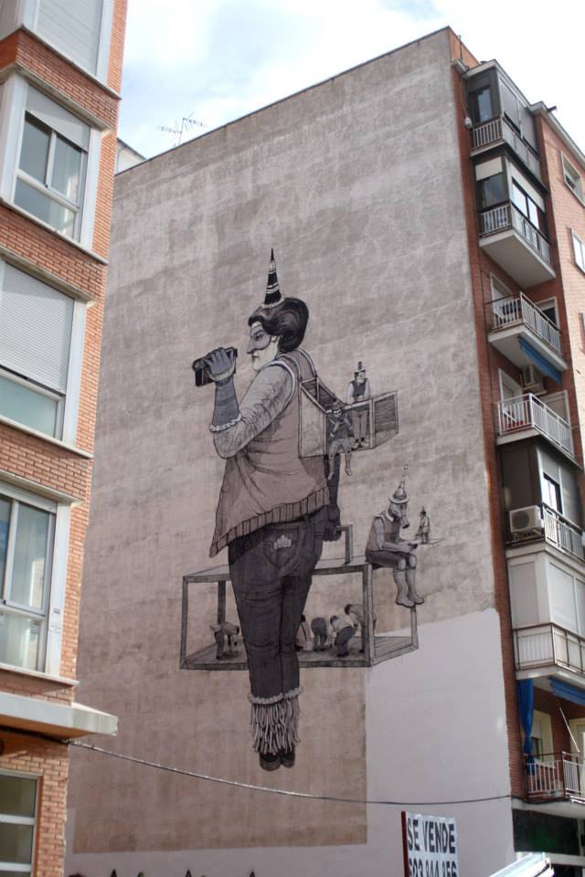 Dopo la bella esperienza per Le 4eme Mur Festival di Niort, pare che SAN si sia spostato a Madrid dove ha da poco terminato un altro splendida parete con un altro dei suoi enigmatici interventi.