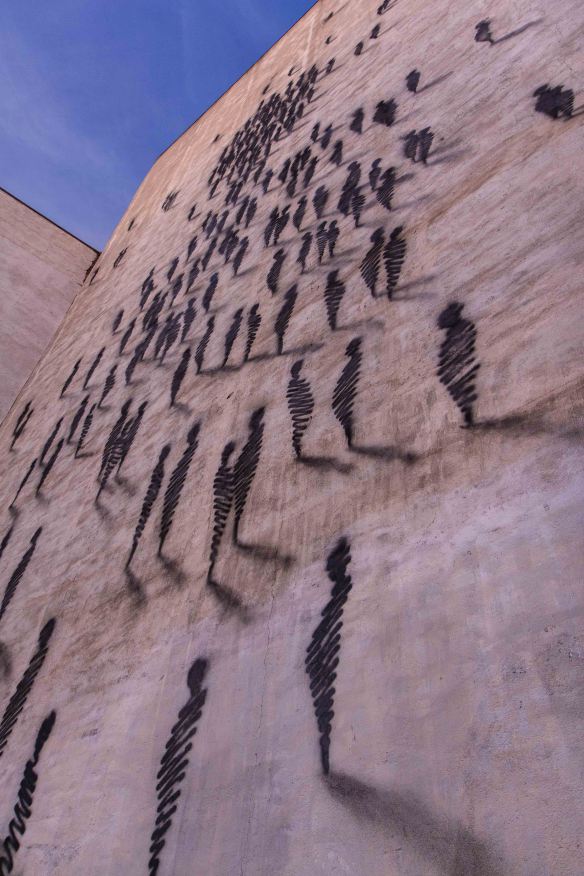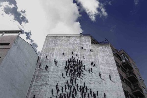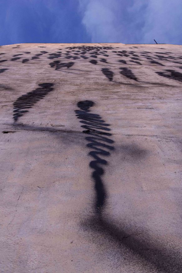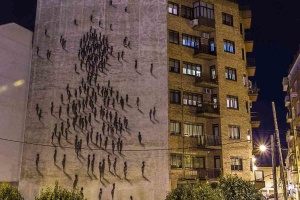 Osservando il lavoro di Suso33 emerge la forte volontà dell’artista di proporre attraverso il proprio immaginario, una personale visione della natura umana e della fisionomia dell’uomo. Passato per differenti sperimentazioni visive l’interprete sembra aver trovato la giusta alchimia affidandosi non ad una riproduzione realistica ed inondando lo spazio con dettagli e tratti del corpo, preferendo piuttosto abbinare la sua poetica visiva ad una gestualità immediata e piuttosto pulita, attraverso il tratteggio di poche linee l’artista spagnolo delimita cosi la forma desiderata calando ogni singola sezione all’interno di un puzzle ragionato fino a far emerge la personale figura. Attraverso questa affinità per il ‘less is better’ Suso33 esibisce così quelle che sono delle vere e proprie ombre di uomini ed aprendo una profonda riflessione sulla condizione umana mostrandoci la sua personale percezione dell’uomo. Dai lavori dell’interprete emerge così una spaccato duro, le figure sono tutte uguali, repliche su repliche che si muovono in simbiosi ed affidando di fatto le loro scelte alla massa, un istantanea della controversa situazione attuale, dove lo spregiudicato consumismo e l’influenza della società ci ha reso capre e vittime di un sistema congeniato e ricamato sulle nostre tasche ed i nostri soldi.