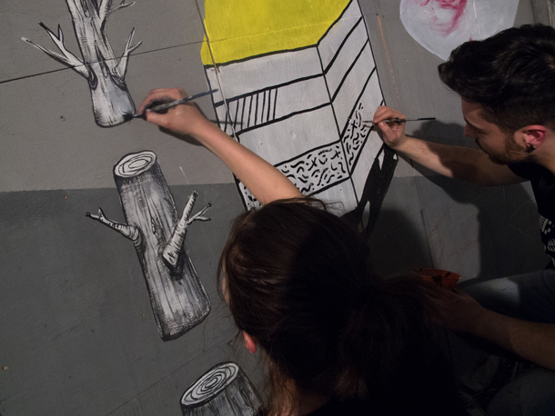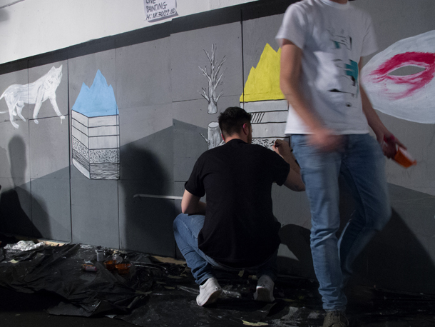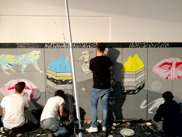 I ragazzi si mettono in mostra per la prima volta in un live painting con un eccellente e camaleontico risultato finale, organizzato dal collettivo Overlight • Arti Incrociate, progetto personale di Cristina Lorenzi, allo Spazio Concept durante il Fuorisalone del Mobile di Milano.